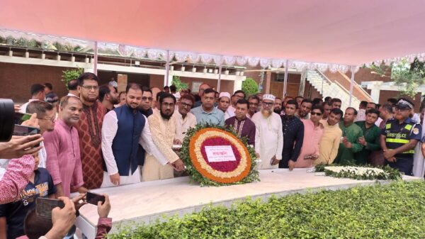 জাতীয় গৃহায়ন কর্তৃপক্ষ কর্মচারী ইউনিয়ন দোহা- আতিক- শাহীন পরিষদ এর পক্ষ থেকে বঙ্গবন্ধুর সমাধিতে ফুলেল শুভেচ্ছা