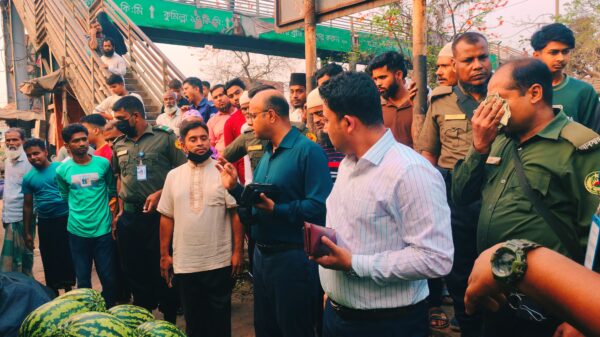 সোহাইবুল ইসলাম সোহাগ।।  কুমিল্লার সদর দক্ষিণ উপজেলার সুয়াগঞ্জ বাজার এলাকায় মহাসড়কের উপর বসানো অস্থায়ী কাঁচাবাজারে আবারও উচ্ছেদ অভিযান পরিচালনা করেছে উপজেলা প্রশাসন। আজ শনিবার (৭ মার্চ) বিকেল চারটা থেকে সাড়ে
