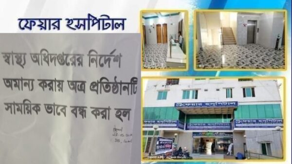 স্বাস্থ্য অধিদপ্তরের নির্দেশ অমান্য করায় হসপিটাল সাময়িকভাবে বন্ধের ঘোষণা