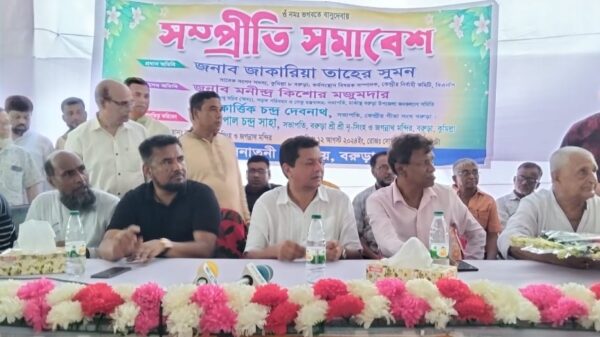 সুজন মজুমদার || কুমিল্লার বরুড়ায় সনাতন ধর্মাবলম্বীদের সাথে সম্প্রীতি সমাবেশ অনুষ্ঠিত হয়েছে। ১২ই আগষ্ট সোমবার বিকাল ৪টায় বরুড়া শ্রী শ্রী নৃসিংহ দেববাড়ী ও জগন্নাথ মন্দিরে সভাপতি বাবু গোপাল চন্দ্র সাহার
