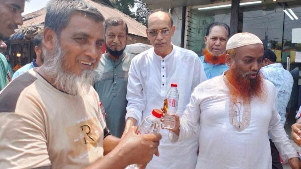 ইলিয়াছ আহমদ বরুড়া। কুমিল্লার বরুড়া পৌরসদর বাজারে ২৮ এপ্রিল ২৪ ইং ওরাই আপনজন সামাজিক সংগঠনের উদ্যেগে শ্রমিক, পথচারী ও বিভিন্ন গাড়ির চালকদের মাঝে বিশুদ্ধ পানি ও ওরস্যালাইন বিতরণ করা হয়।